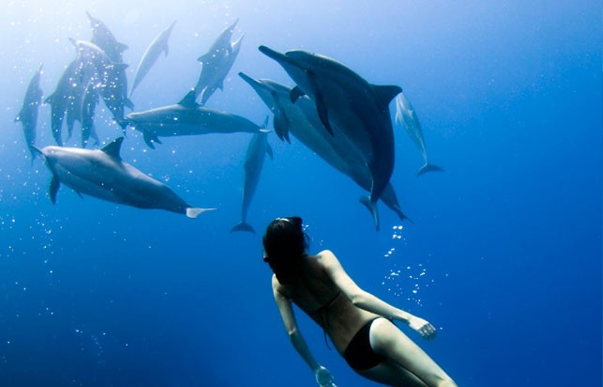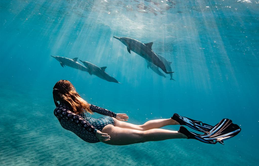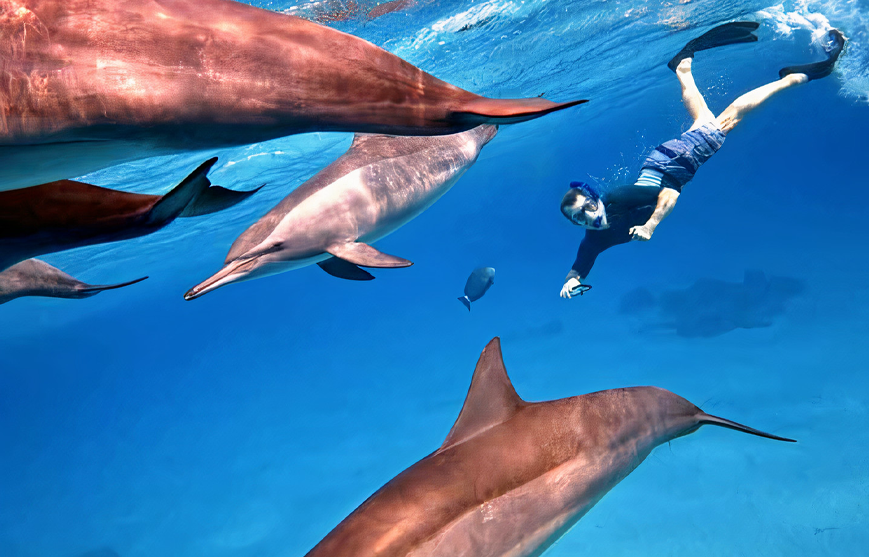 قم برحلة بحرية فوق البحر الأحمر لاكتشاف الدلافين البرية والسباحة بها ، وركوب قارب الموز في هذه الرحلة التي تستغرق يومًا كاملاً من الغردقة أو الجونة أو مكادي. أبحر إلى Dolphin House ، وهي منطقة معروفة بكثافة الدلافين البرية فيها. راقب هذه الثدييات الجميلة في بيئتها الطبيعية ، وقم بالسباحة: مع الحظ ، قد تلعب الدلافين معك. أثناء تواجدك هنا ، يمكنك الغطس حول الشعاب المرجانية المليئة بالأسماك أو أخذ حمام شمسي على سطح السفينة - فالخيار لك. استمتع بمغامراتك مع وجبة غداء على متن الطائرة وركوب قارب الموز الذي لا يُنسى.