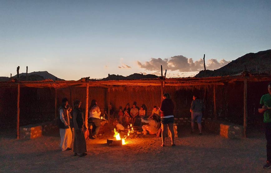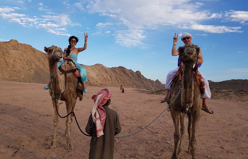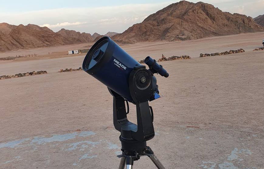 انتقل من الفندق بسيارة الجيب إلى نقطة البداية ، وادخل إلى صحراء الغردقة الخلابة لمسافة 26 كم ، وقم بالقيادة للوصول إلى المخيم البدوي عبر منطقة مراقبة غروب الشمس وإلى الخيمة البدوية لبدء برنامجك بركوب الجمال ، ثم مشروب الترحيب المنعش وشاي بدوي بالأعشاب ، بعد ذلك استمتع ببوفيه العشاء البدوي اللذيذ مع ضوء الشموع الرومانسية ، واستمتع بالصحراء وشاهد ملايين النجوم في أجواء هادئة وتدخل إلى عالم الطبيعة الفلكية الخلاب ، بعد ذلك سيأخذك دليلنا في رحلة إلى حافة الكون وستستمتع برؤية الكون البعيد عن الأرض ، وستتاح لك حينها الفرصة لرؤية بعض الكواكب في مجرتنا ، وسوف تتعلم العديد من المعلومات المثيرة حول علوم الفضاء والنجوم ، بالإضافة إلى علوم الفضاء القديمة والحديثة ، بعد الشرح ، انتقل إلى عالم التلسكوبات لمراقبة الكواكب والنجوم ، وبعد إلقاء نظرة على النجوم ، قم بالعودة إلى الفندق بواسطة سيارة جيب